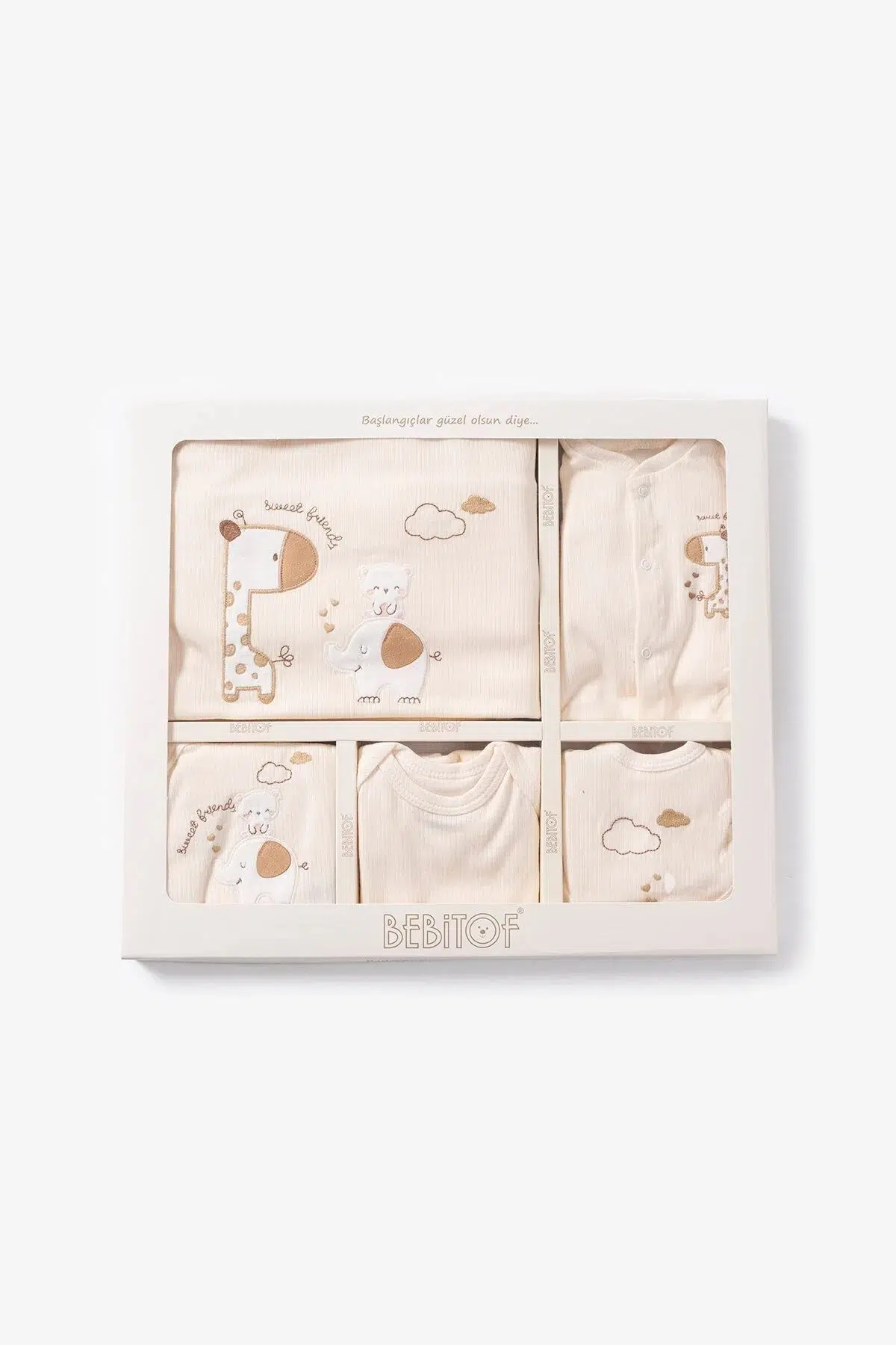 | Etiketler | Bebitof Sevimli Fil Ve Zürafa 10'Lu Hastane Çıkış Seti |
