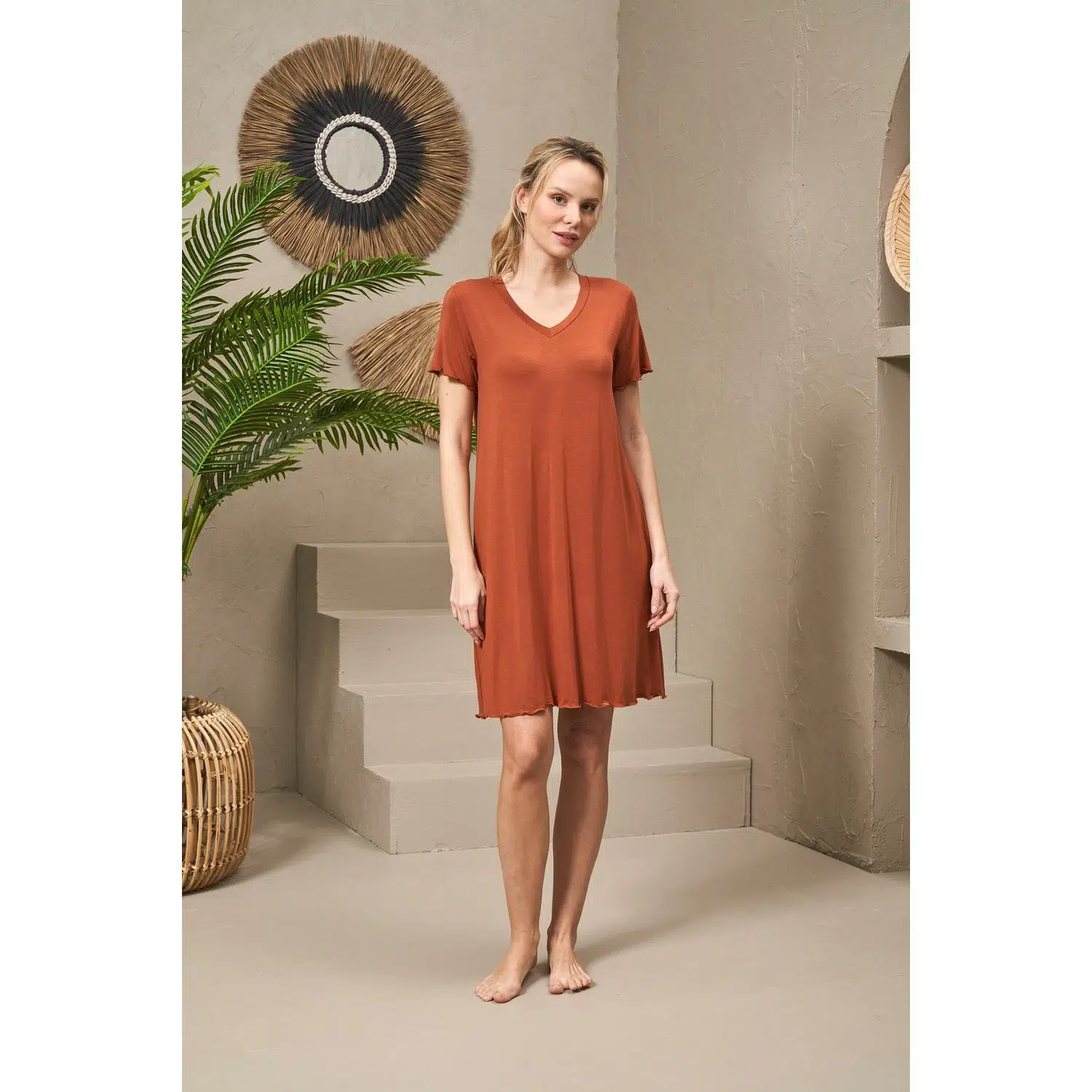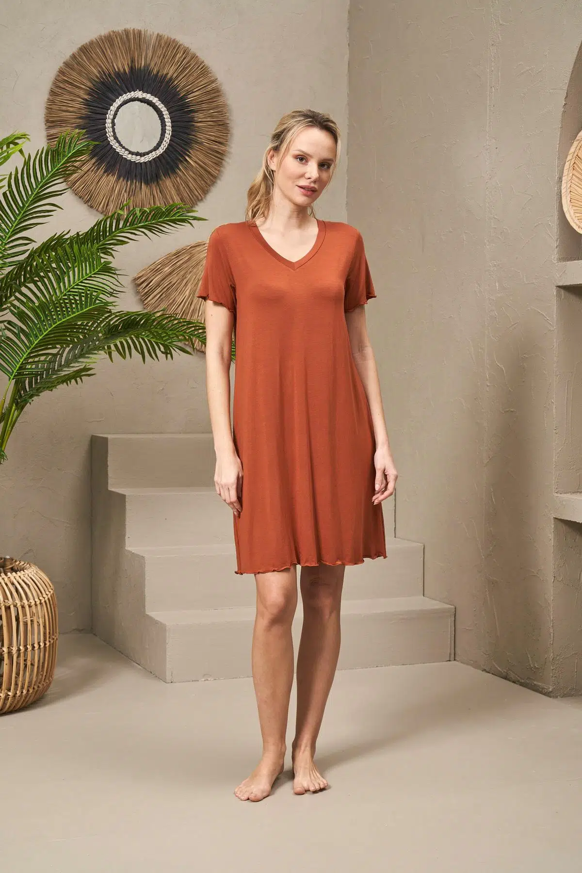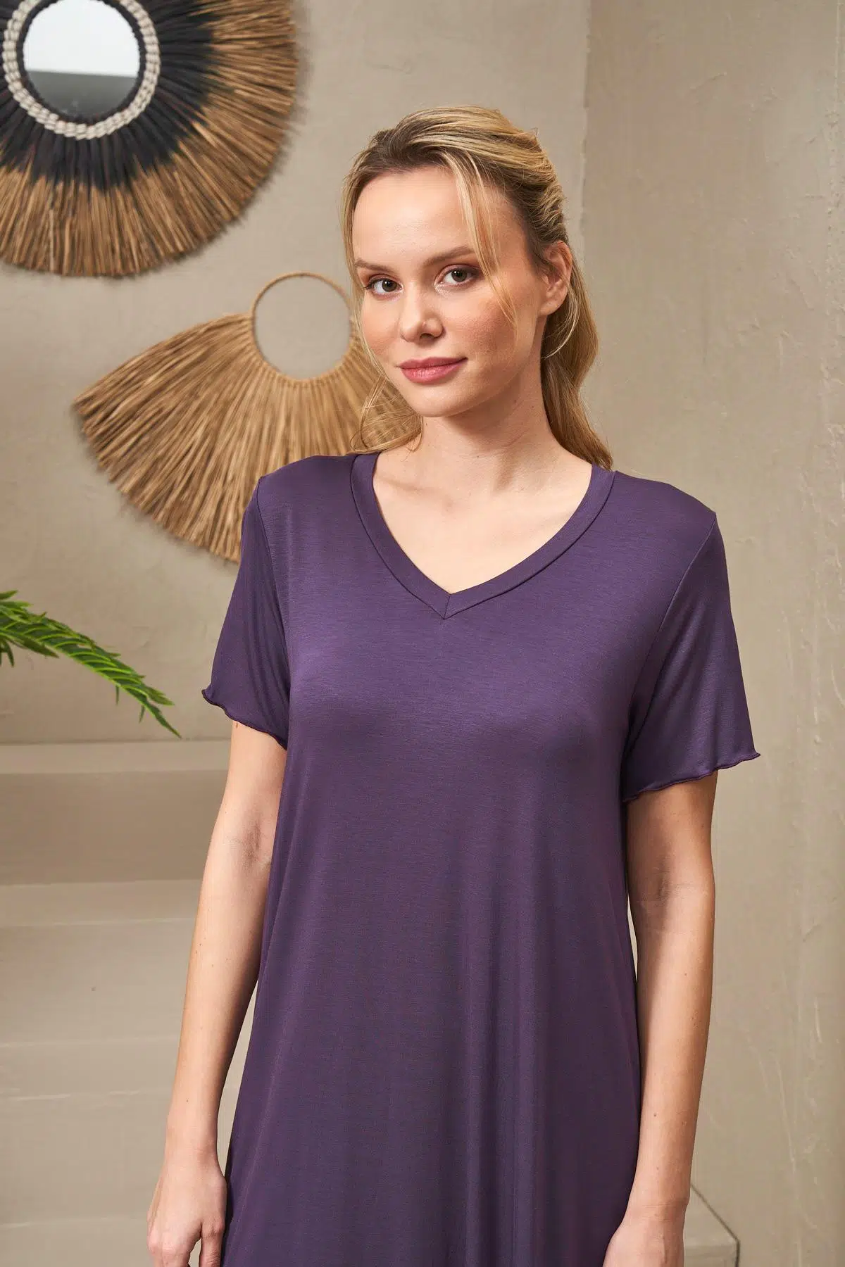 Pjs 25110 Kadın V Yaka Kısa Kollu Gecelik