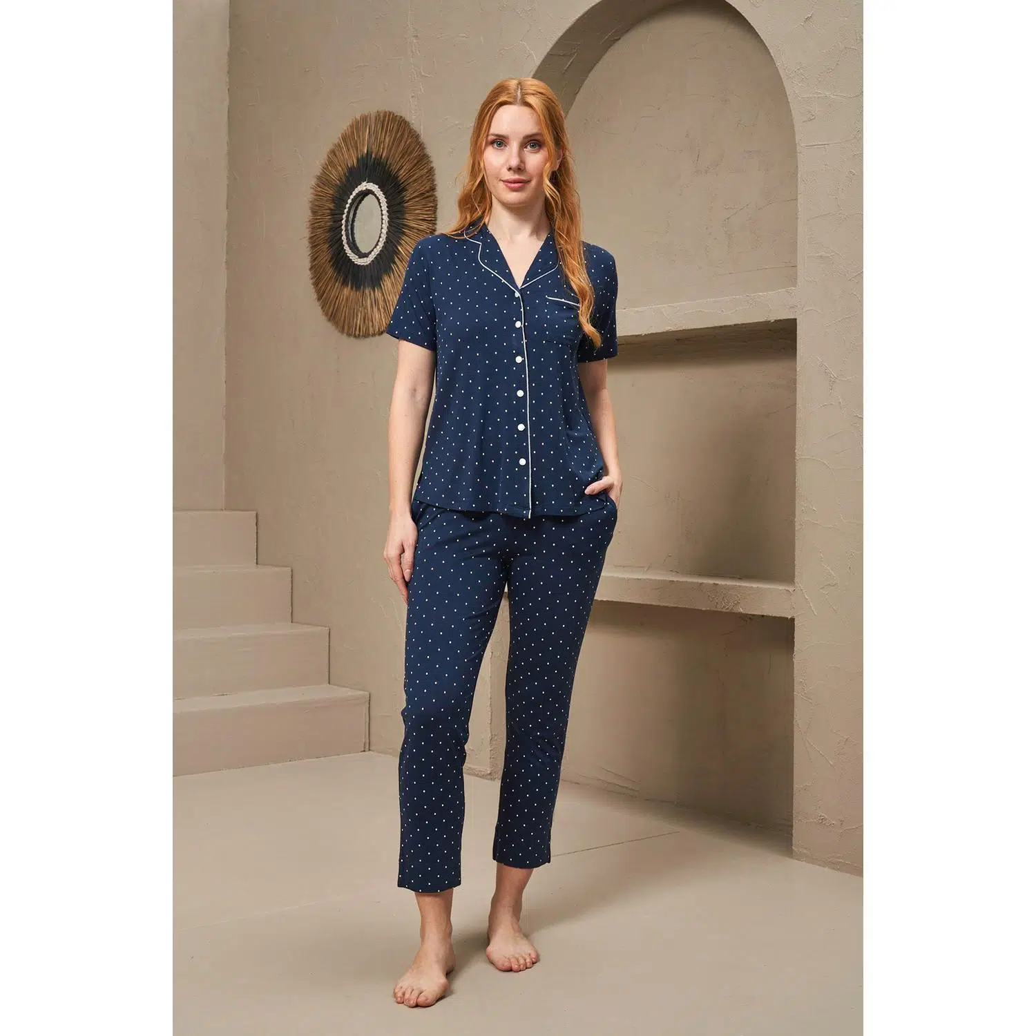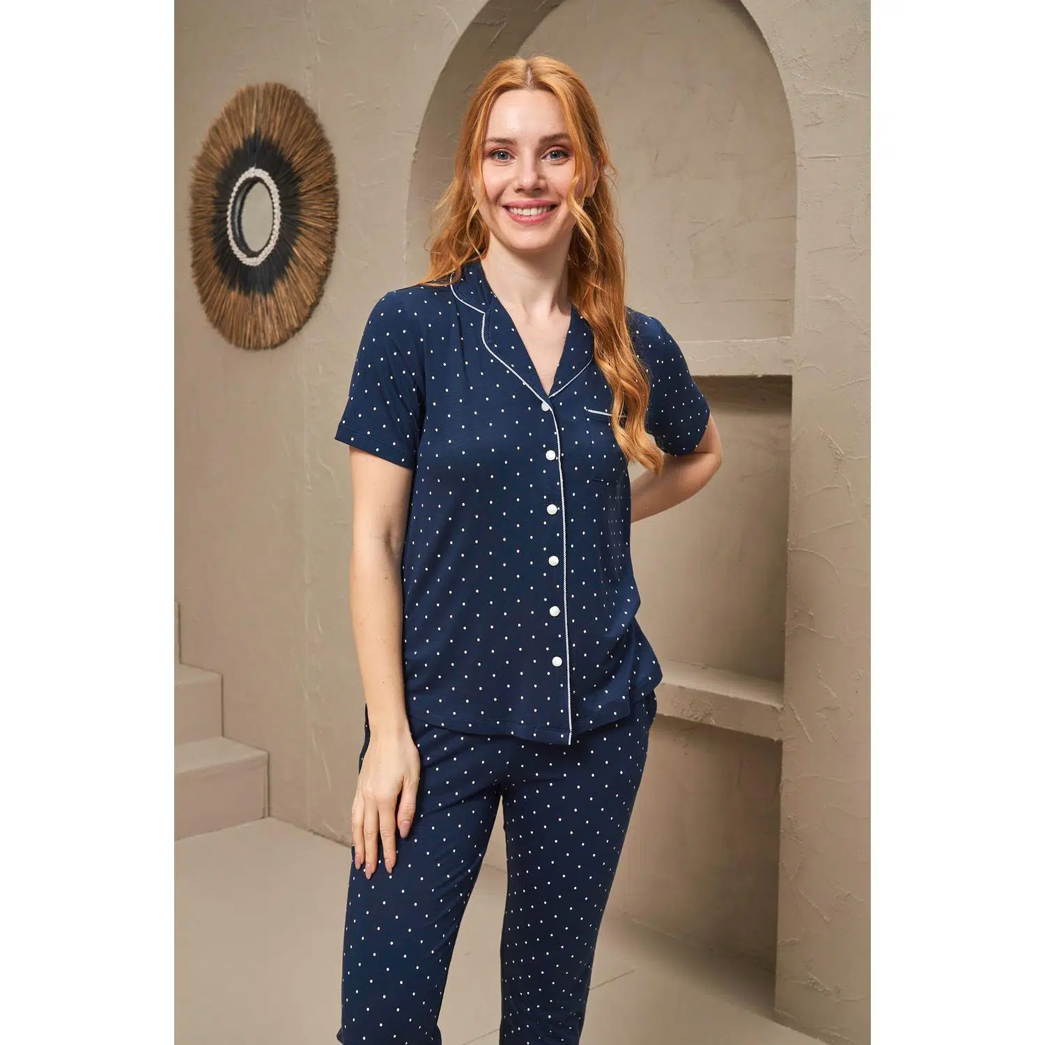 | Etiketler | Pjs 25163 Kadın Yakalı Düğmeli Puanlı Kısa Kollu Pijama Takım |