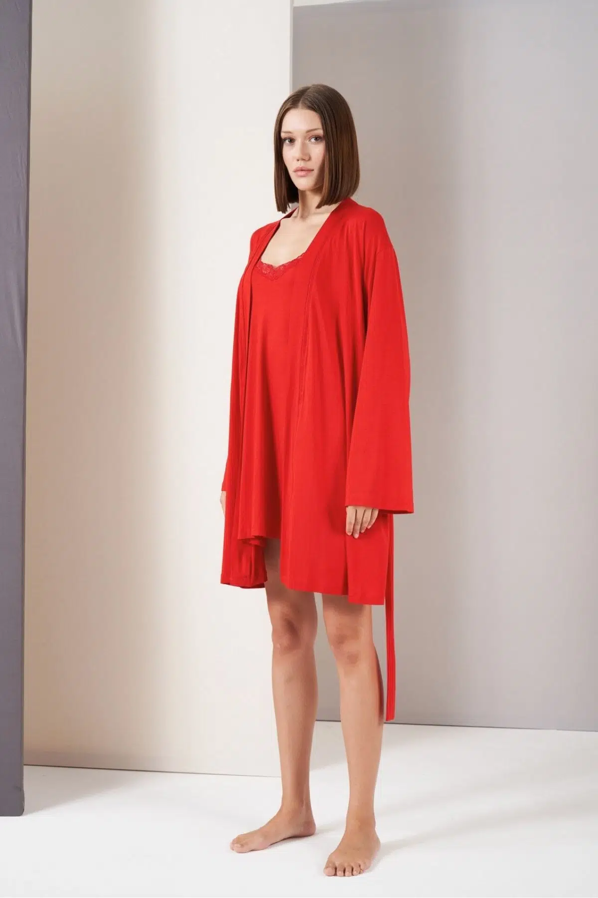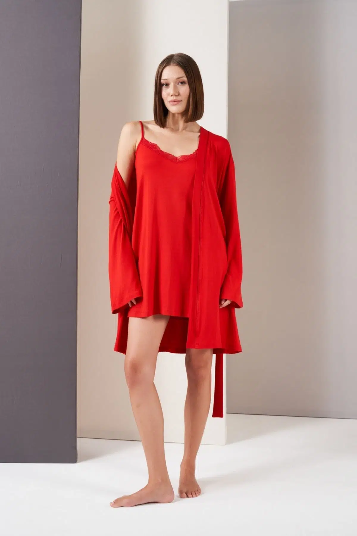 Pjs Kadın Askılı Dantel Detaylı Gecelik Sabahlık İkili Takım