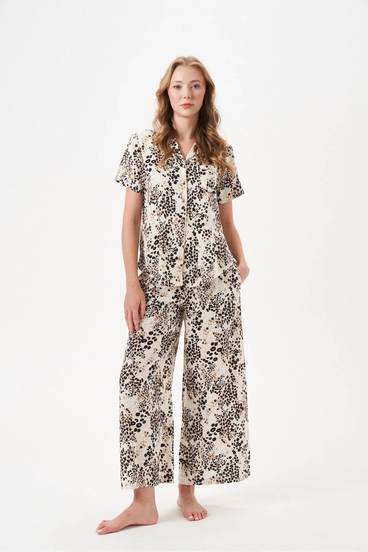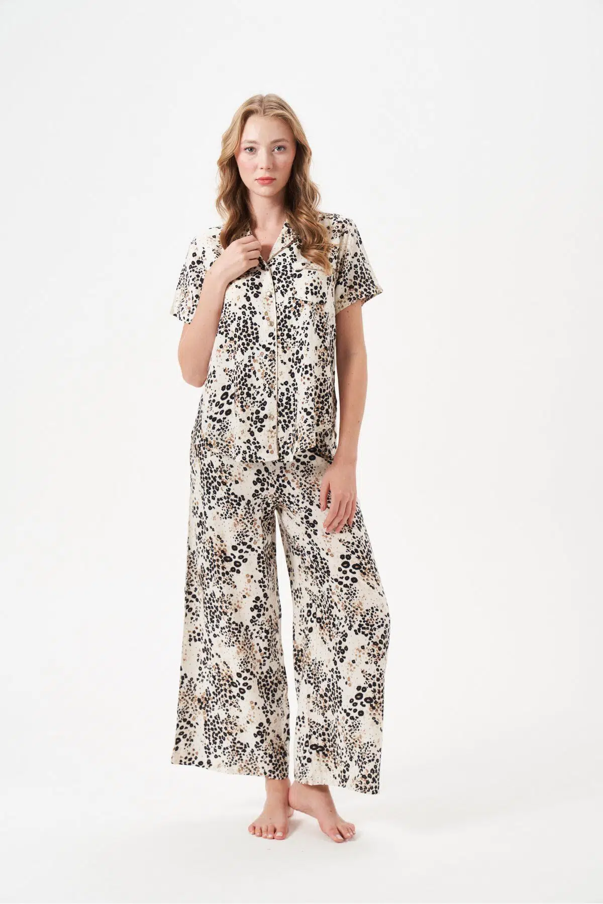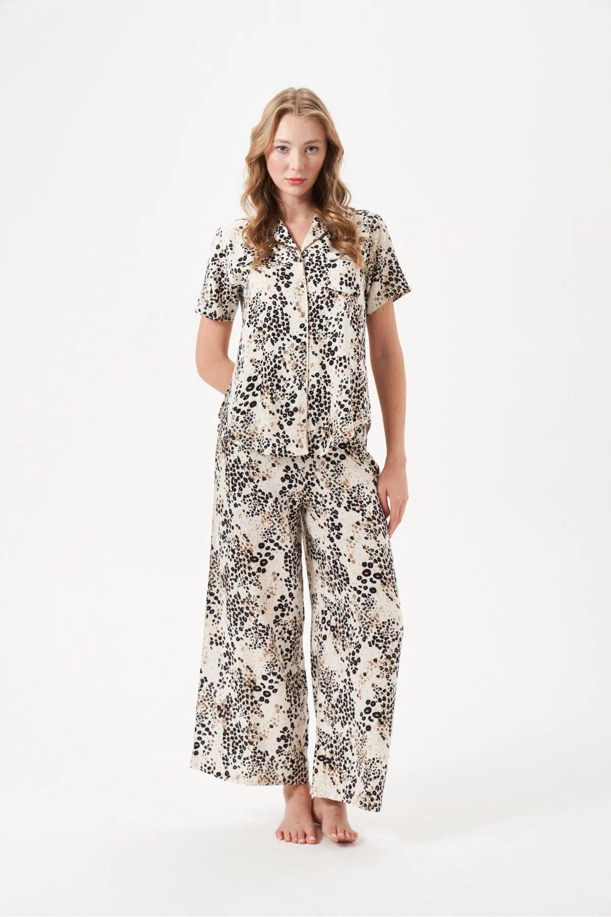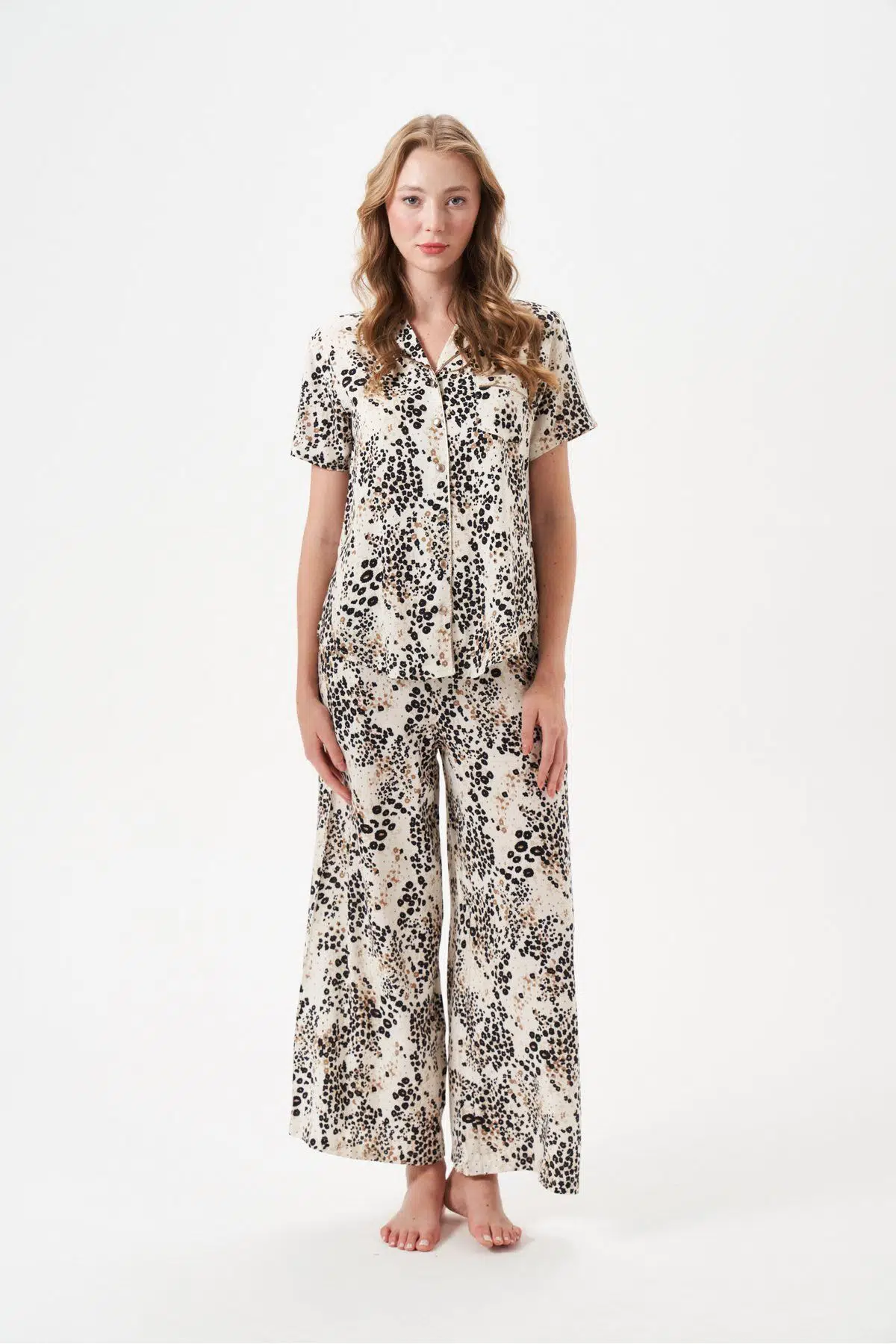 | Etiketler | PJS Kadın Düğmeli Geniş Paça Desenli Kısa Kol Pijama Takım 29049 |