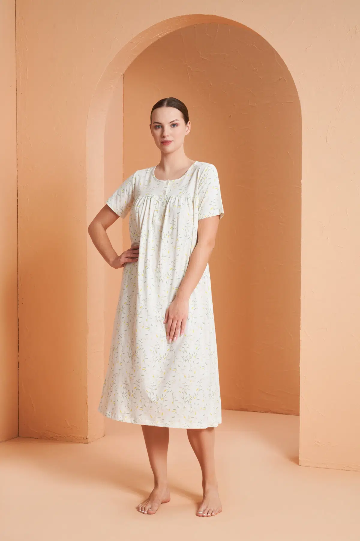 Pjs Kadın Leopar Desenli İp Askılı Dantel Detaylı Yırtmaçlı Uzun Gecelik