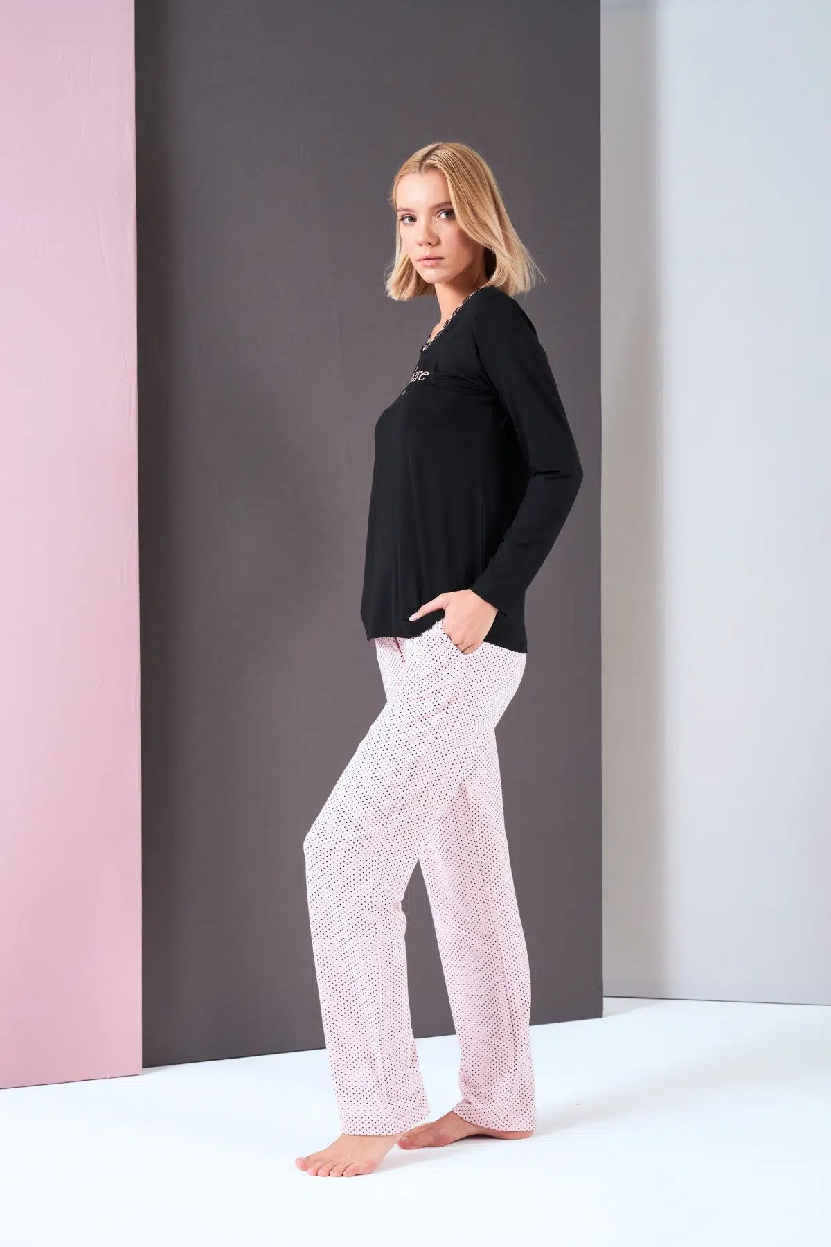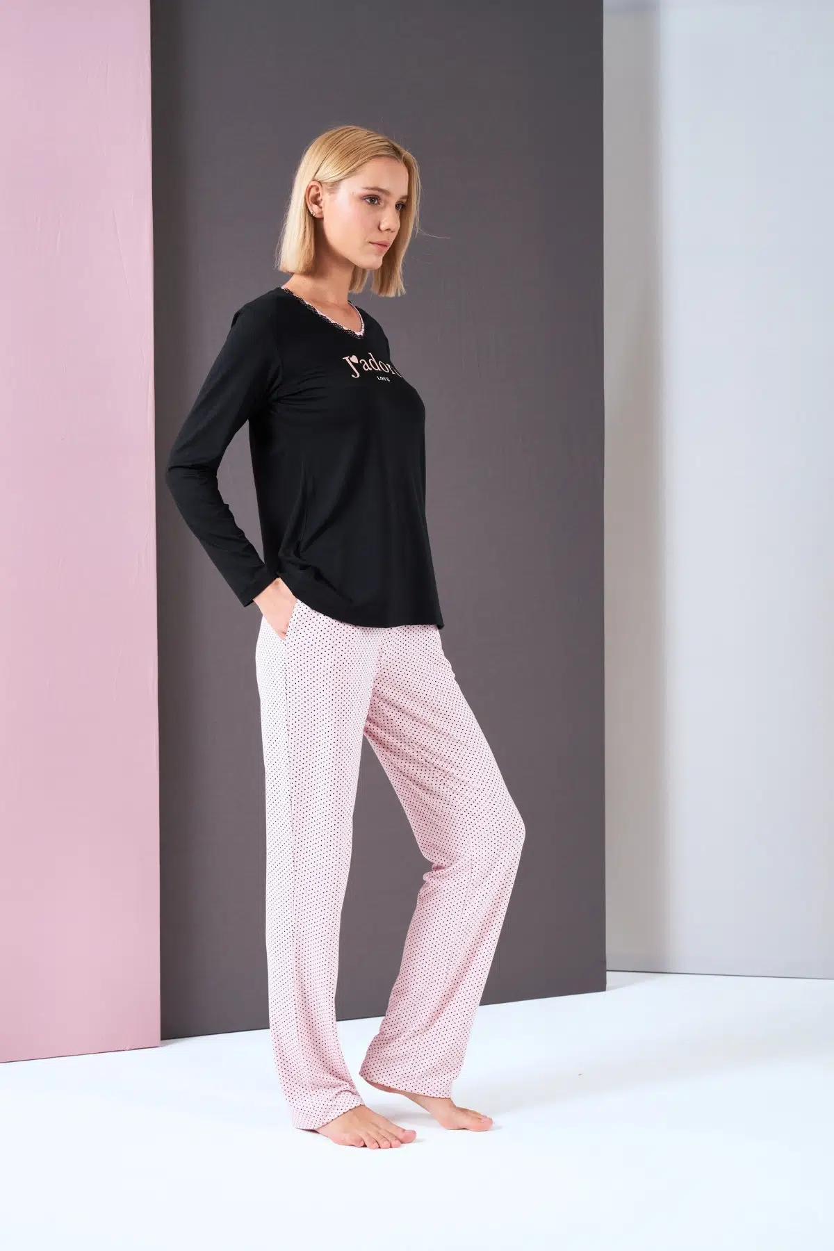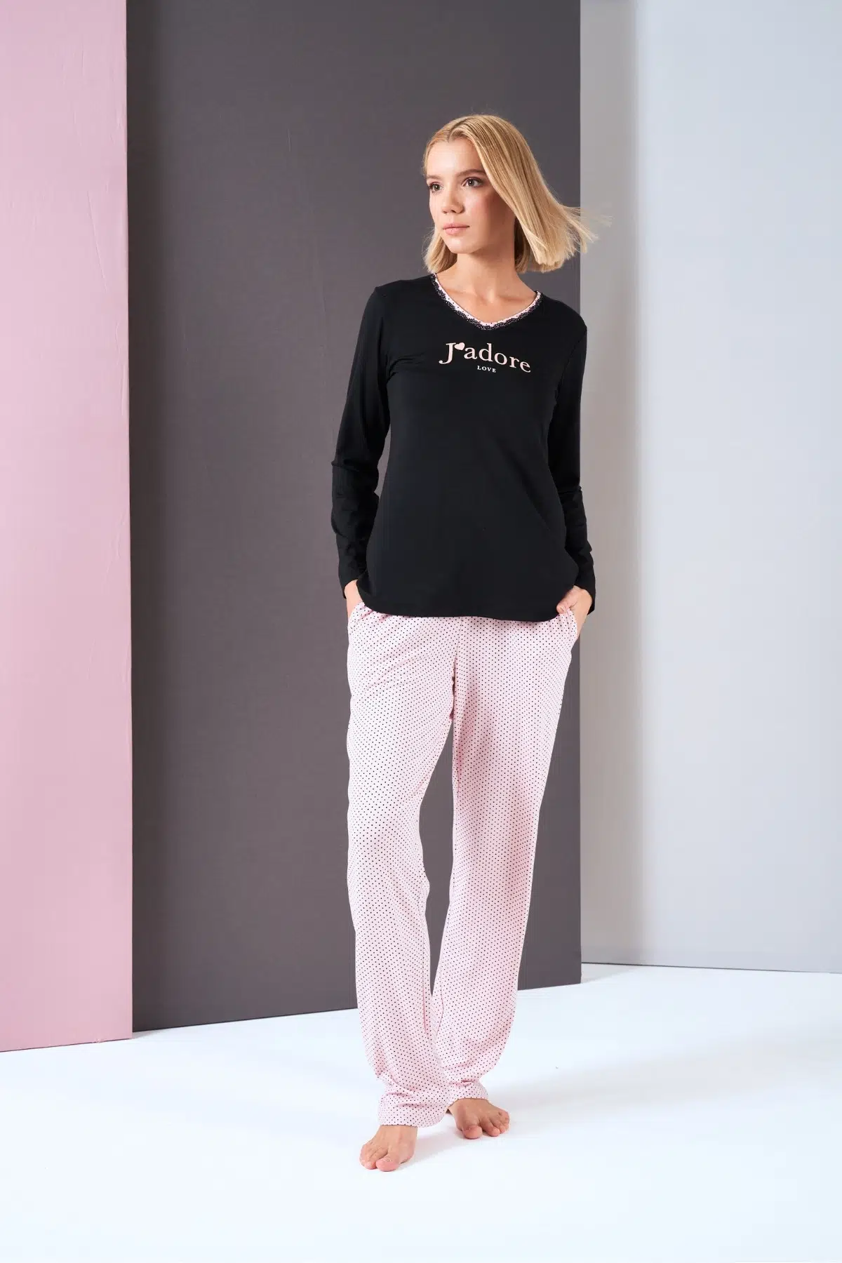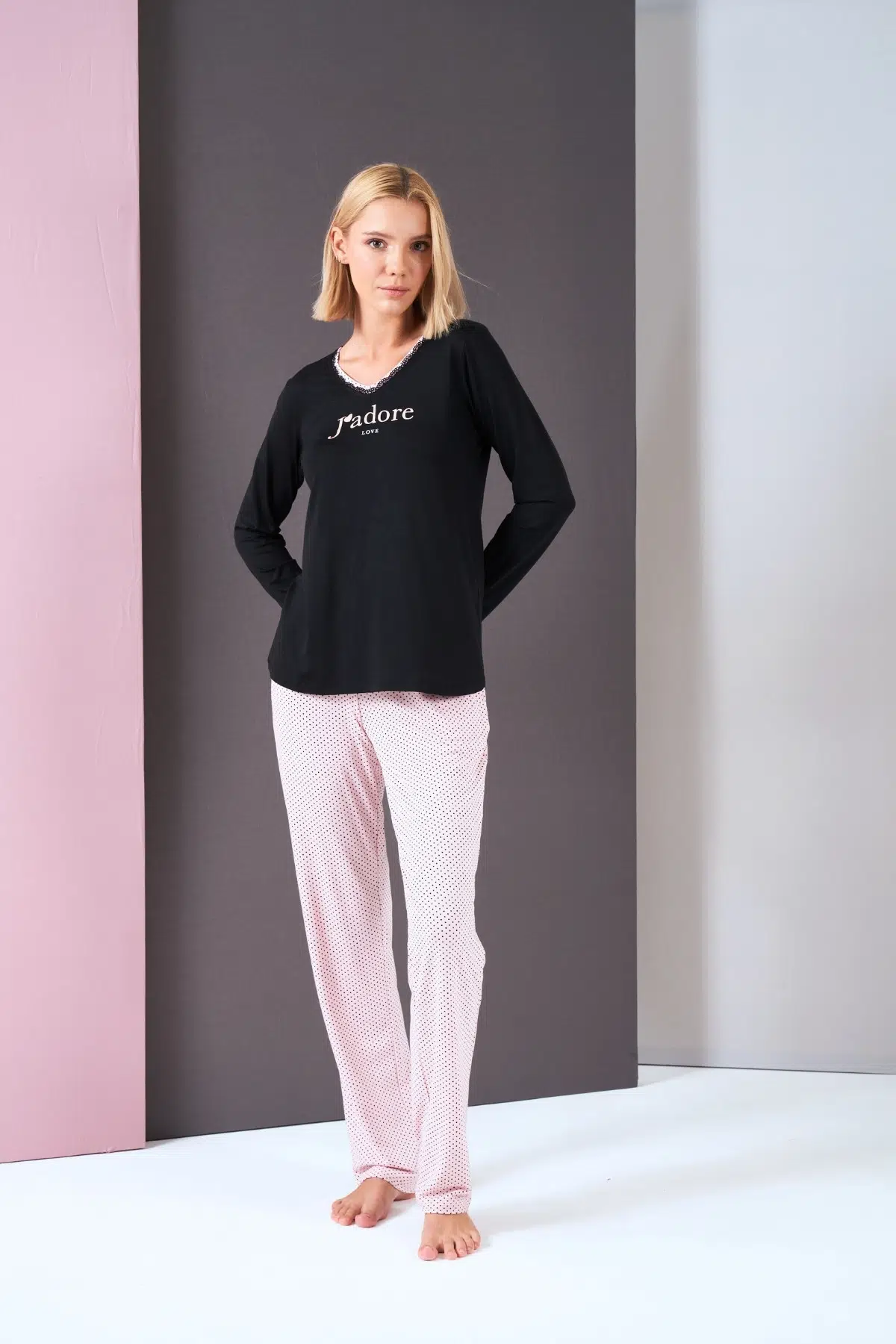 | Etiketler | Pjs Kadın V Yaka Puantiyeli Yazılı Uzun Kol Pijama Takım |