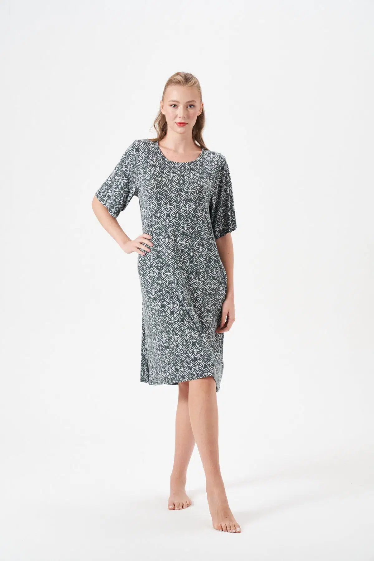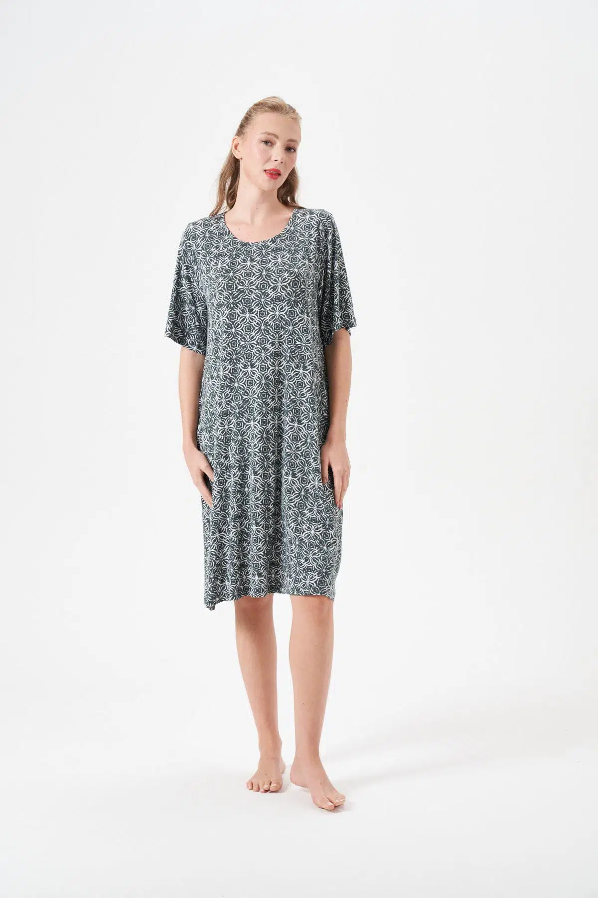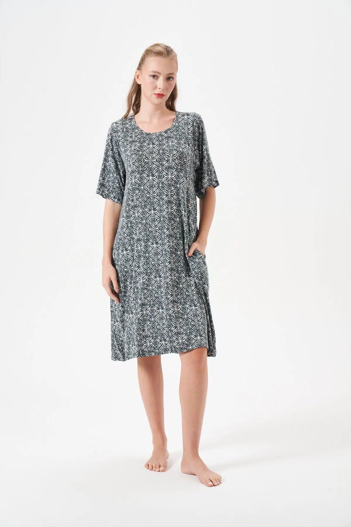PJS Kadın Yuvarlak Yaka Desenli Cepli Elbise 29143