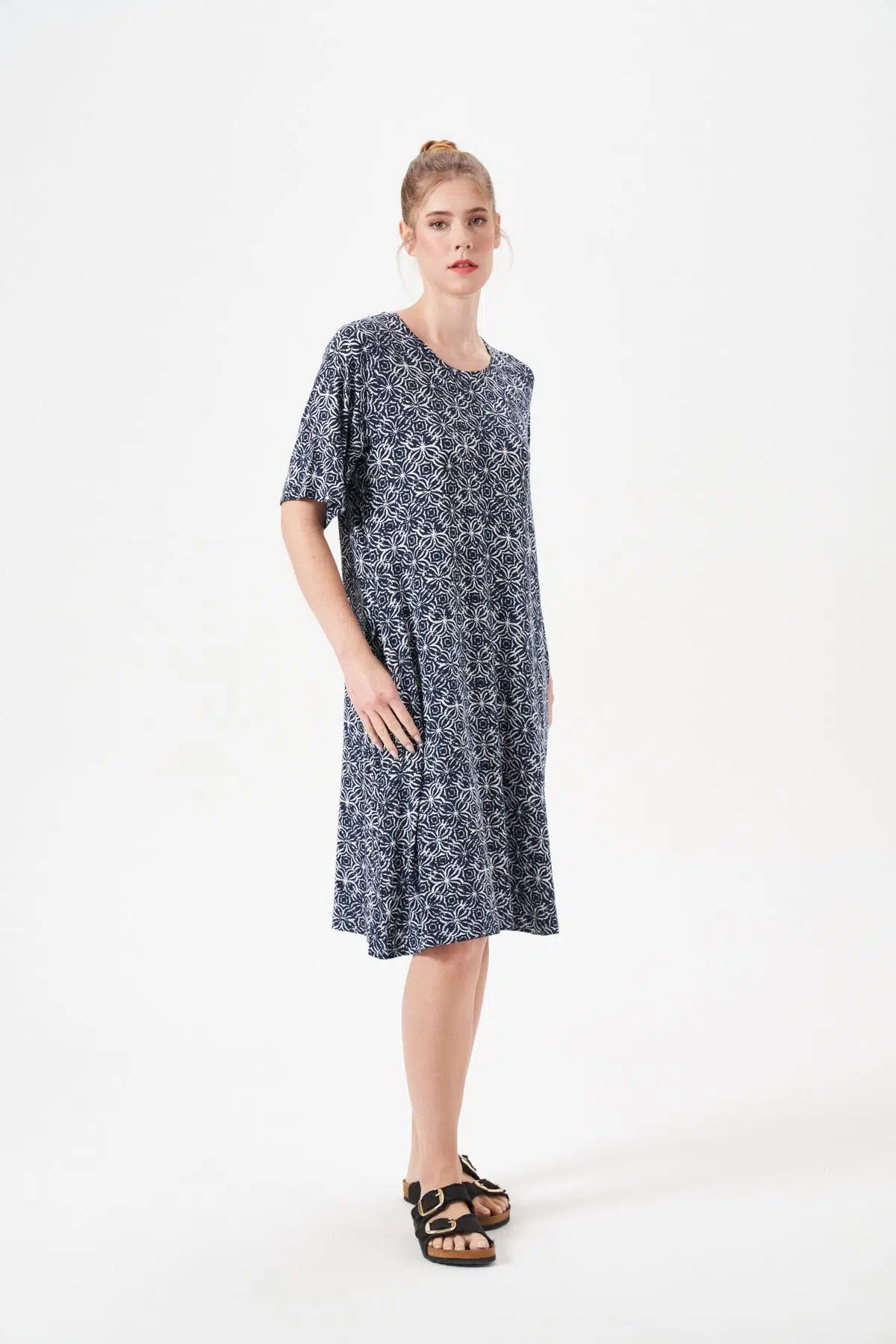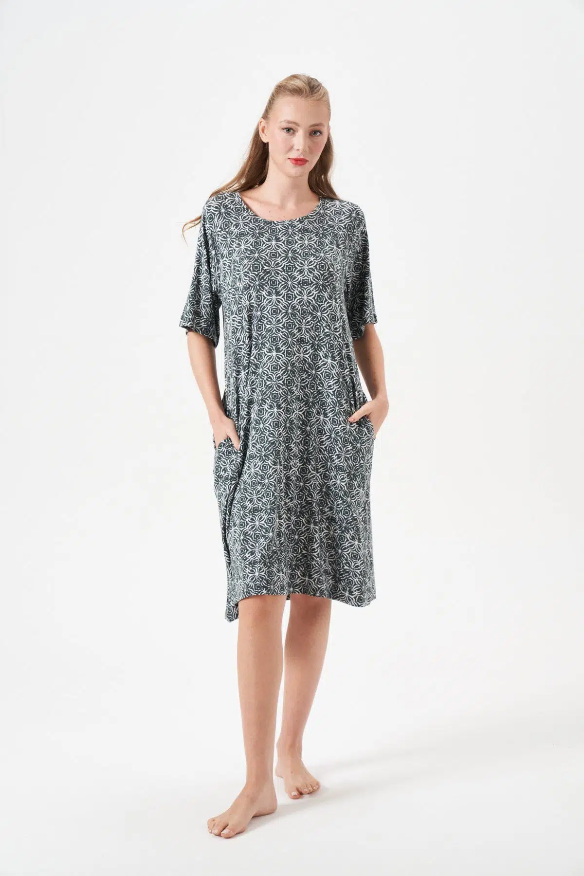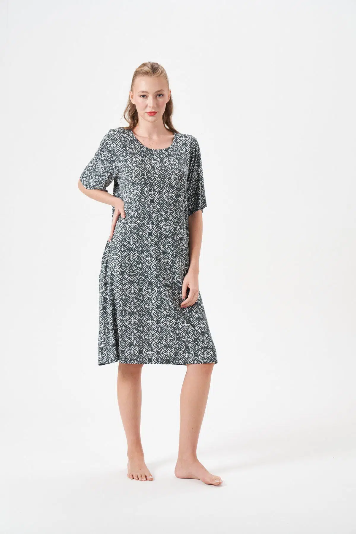 PJS Kadın Yuvarlak Yaka Desenli Cepli Elbise 29143