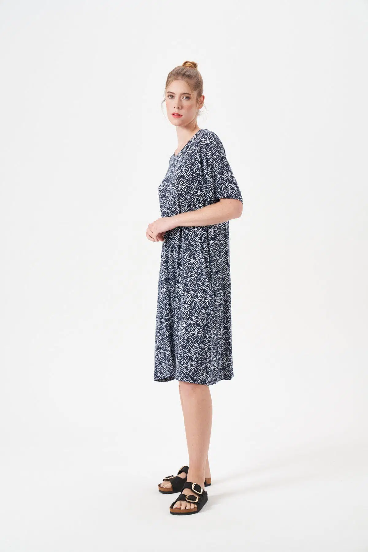 EtiketlerPJS Kadın Yuvarlak Yaka Desenli Cepli Elbise 29143