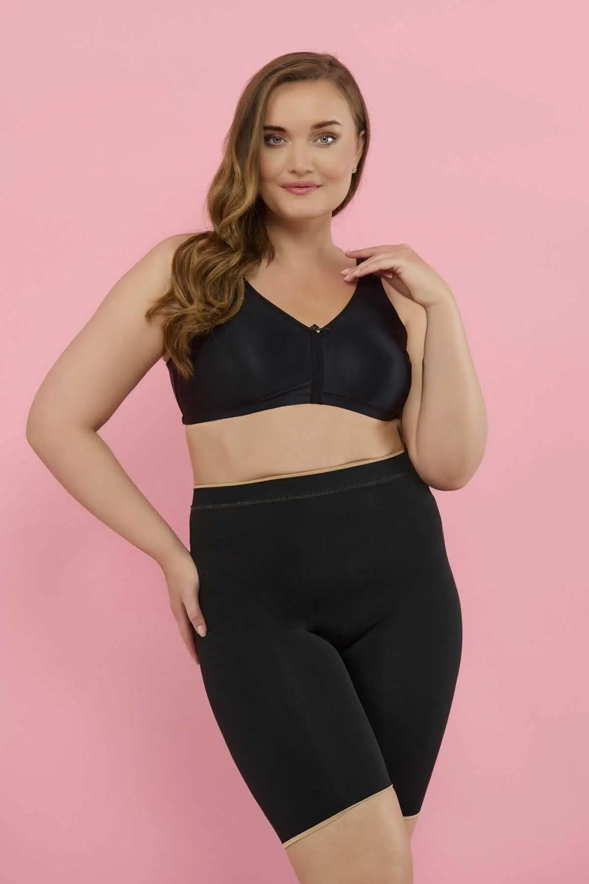 %80 Polyamide, %20 Elastane. Dikişsizdir, bu sayede karın ve basen bölgesini toplarken, kıyafetin altından iz olmamasının da önüne geçer. Ürün çift taraflı giyilebilmektedir. bir tarafı siyah iken diğer tarafı ten rengidir. Yumuşak bel kemeri ve bacak bantları sayesinde belde ve bacakta iz yapmaz.